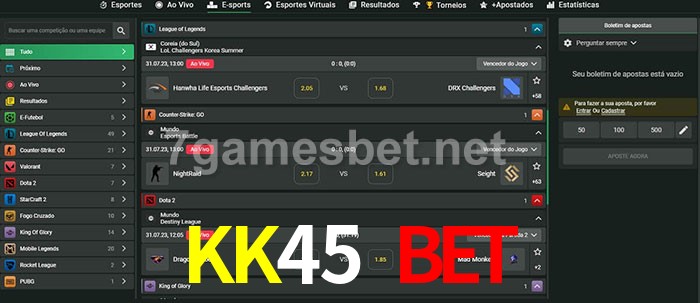 O KK45 Bet oferece uma grande seleção de opções de apostas em e-sports com probabilidades competitivas